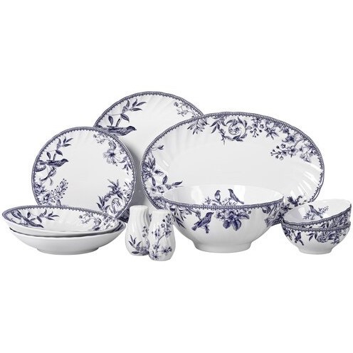 بشقاب غذاخوری (6 عدد), بشقاب خورشخوری (6 عدد), پیشدستی (6 عدد), پیاله (6 عدد), دیس (1 عدد), کاسه (1 عدد), نمکپاش و فلفلپاش (2 عدد)