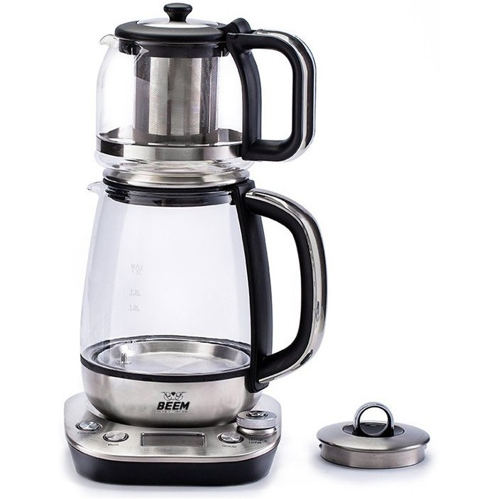 طرح منحصربهفرد چایساز بیم TM2806 با ترکیب سازهی استیل و شیشه، جلوهای شفاف و لوکس به محیط آشپزخانه میبخشد. المنت حرارتی مخفی ۲۲۰۰ واتی با ترموستات معتبر Strix، توانایی جوشآوری سریع آب و تنظیم دمای گرمنگهدار از ۴۰ تا ۹۰ درجه سانتیگراد را فراهم میکند. کتری ۱.۷ لیتری و قوری یک لیتری هر دو از شیشه مقاوم ساخته شده و فیلتر استیل قابل شستشو نیز طعم خالص چای را تضمین میکند. قابلیت چرخش ۳۶۰ درجه و عملکرد بدون سیم همراه با سیستم حفاظت از خشکجوشیدن از ایمنی و سهولت استفاده این چایساز ایرانی پشتیبانی میکند.
