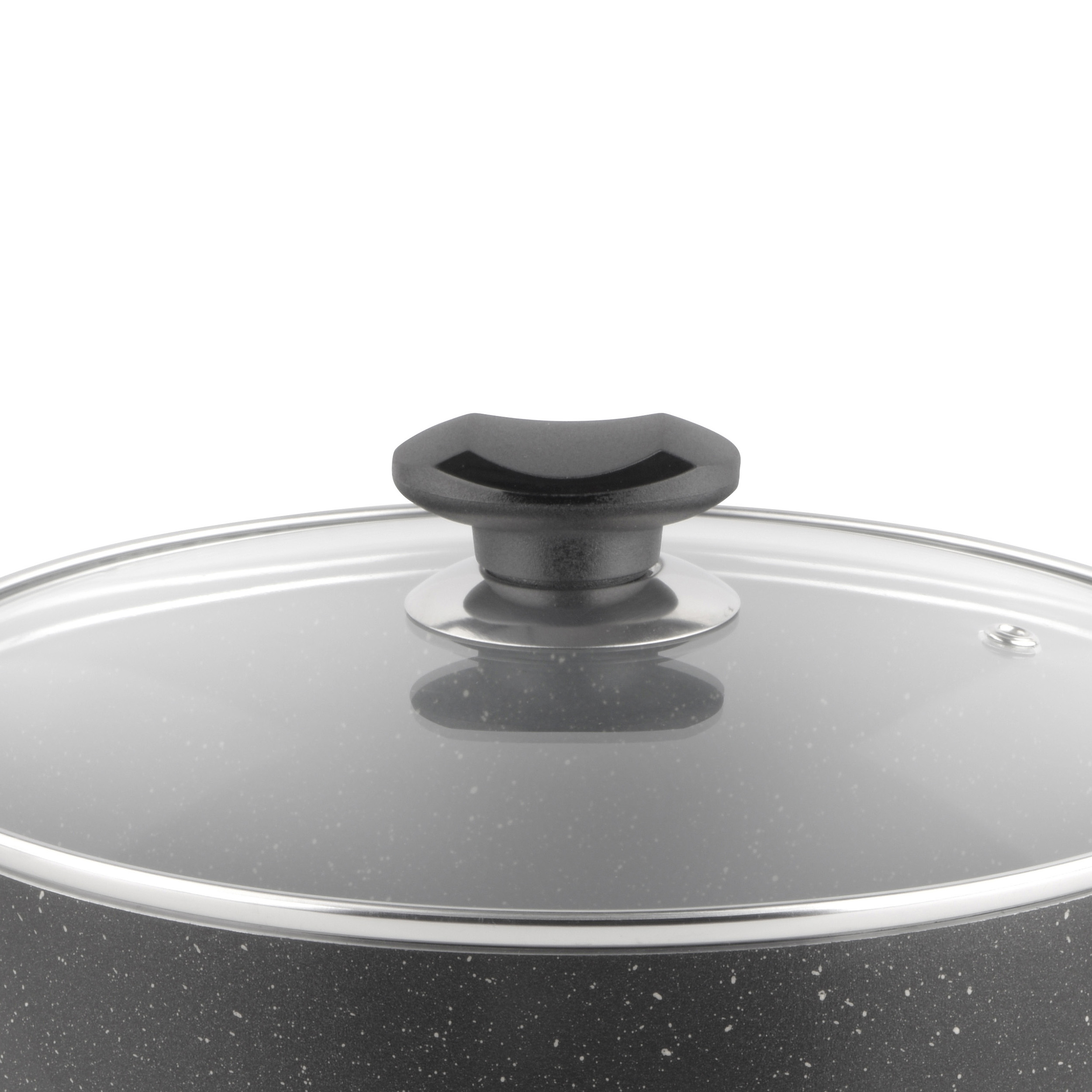 در دل آشپزخانه، این قابلمهی ۲۶ سانتیمتری با بدنهای از گرانیت مستحکم، ترکیبی از دوام و زیبایی را به نمایش میگذارد. پوشش سنگی آن بهگونهای طراحی شده که انتقال حرارت بهسرعت صورت گرفته و از چسبیدن مواد غذایی جلوگیری میکند. قابلیت شستوشوی آسان بهصورت دستی یا با ماشین ظرفشویی، ایمنی در برابر خط و خش و حفظ درخشش بدنه از مزایای بارز این محصول است. برند «تیارا» با توجه به استانداردهای کیفی بالا، تجربهای مطمئن و کاربردی را برای پختوپز روزمره فراهم میکند.