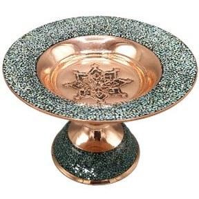 با الهام از ظرافت هنر ایرانی، این شیرینیخوری فیروزهکوب کارگاه آقاجانی با بدنهای تماممس و تزئینات فیروزهکوبی، جلوهای بینظیر به میز پذیرایی میبخشد. قطر دهانه 16 سانتیمتری و عمق 3 سانتیمتری آن امکان چیدمان انواع شیرینی و تنقلات را فراهم میآورد، در حالی که پوشش داخلی مسی عمر و دوام ظرف را تضمین میکند. ارتفاع 11 سانتیمتری و وزن 350 گرمی این اثر، کاربرد تزئینی یا مصرفی را به آسانی ممکن ساخته و نشان از دقت و خلاقیت هنرمندان ایرانی در کارگاه آقاجانی دارد.
