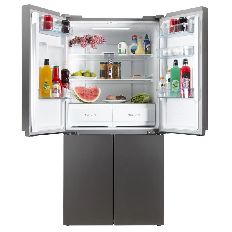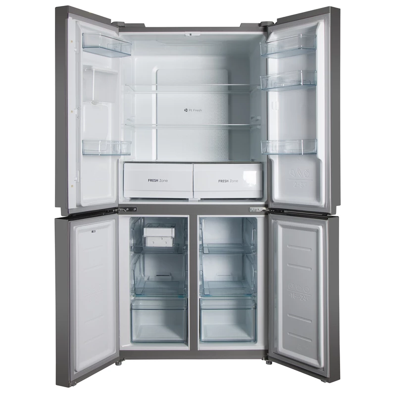یخچال فریزر ساید بای ساید پاکشوما مدل 4D RDP 530 W، یک دستگاه ۱۹ فوت با گنجایش کلی ۴۷۹ لیتر است که در ابعاد استاندارد اما با طراحی هوشمند برای بهرهبرداری حداکثری از فضا عرضه شده است. ارتفاع ۱۷۸ سانتیمتری، پهنای ۸۳ سانتیمتری و عمق ۷۴ سانتیمتری، این مدل را مناسب آشپزخانههای متوسط تا بزرگ میکند. بدنه با رنگ سفید و دستگیره مخفی، ظاهری مینیمال و یکپارچه ایجاد کرده و نمایشگر لمسی در بخش میانی، کنترل عملکرد را ساده و دقیق ساخته است. در بخش یخچال با گنجایش ۳۳۰ لیتر، سه طبقه اصلی از جنس شیشه مقاوم و پنج طبقه روی درب برای ظروف و بطریهای مختلف در نظر گرفته شده است.