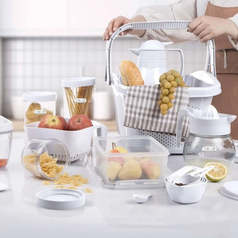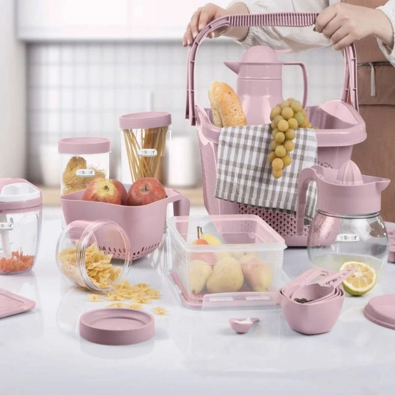 ست جهزیه عروس ۱۰۸ پارچه (۸۰ آیتم) شامل تمامی ملزومات پلاستیکی آشپزخانه مناسب برای جهزیه ، کمپ ، مسافرت و استفاده روزانه می باشد که شامل ۱۰۸ تکه و ۸۰ آیتم می باشد