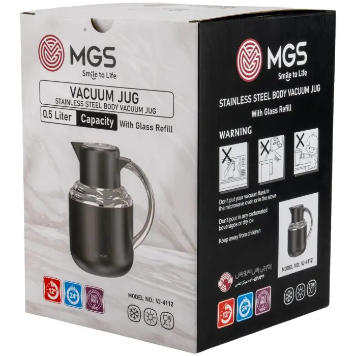 فلاسک ام جی اس مدل VJ-4112 با گنجایش ۰.۵ لیتر (۵۰۰ میلیلیتر) و رنگ جذاب تیتانیوم، انتخابی کارآمد و باکیفیت برای نگهداری انواع نوشیدنیهای گرم و سرد است. این فلاسک دستهدار دارای ساختاری دوجداره است که لایه بیرونی آن از استیل مقاوم و لایه داخلی آن از شیشه ساخته شده است. وجود فضای خلاء میان این دو جداره باعث میشود دمای مایعات برای مدت طولانی ثابت بماند.طراحی درب این محصول به صورت پیچی بوده که علاوه بر سهولت در استفاده، کاملاً ضد نشت است و نگرانی بابت ریزش مایعات در هنگام حملونقل، سفر یا پیکنیک را برطرف میکند. ترکیب بدنه استیل تیتانیومی با مخزن شیشهای داخلی، ضمن حفظ طعم و کیفیت نوشیدنی، دوام و زیبایی محصول را تضمین میکند.