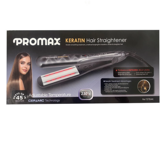 این روزها همه افراد از انواع تکنیک ها برای زیباتر نگه داشتن موهای خود استفاده می کنند، زیرا موی انسان همیشه یکی از مهم ترین بخش های زیبایی و استایل به شمار می رود. امروزه با توجه به تغییر مد، روز به روز انواع مختلف موها را می توان در همه جای دنیا مشاهده کرد، اما موهای درخشان، سالم و صاف همیشه ثابت هستند. در حال حاضر می توانید انواع متنوعی از اتو مو های جدید را در فروشگاه های آنلاین معتبر مشاهده و خریداری کنید. اتو مو پرومکس مدل 5764K از سری اتو مو های های کراتین از برند پرومکس است. این محصول علاوه بر سیستم گرمایشی با المنت از طریق صفحات، از امواج مادون قرمز برای صاف کردن مو ها استفاده می کند. امواج مادون قرمز به بافت مو نفوذ می کند و باعث صاف شدن یک دست مو می شود. اتو مو های معمولی با حرارت المنت کار میکنند و فقط لایه ی بیرونی مو را دسترسی دارند. روکش اتو مو ترکیبی از سرامیک و کراتین می باشد که باعث تغذیه طولانی مدت مو و بهبود آن می شود و بهترین راه برای رهایی از شر موهای آسیب دیده است.